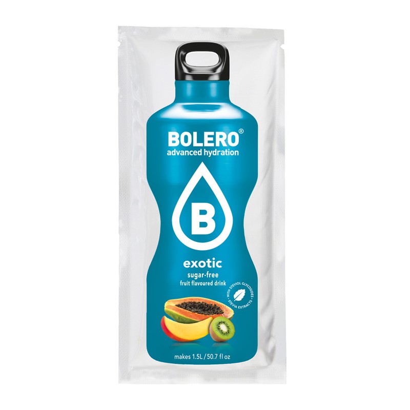 Boisson hydratante pour sportif, saveur EXOTIQUE sans additif et faible en calories proposé par BOLERO.