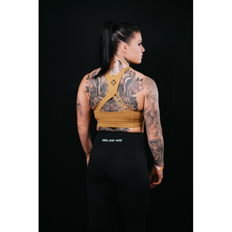 Ce crop bra jaune gold CHELSEA de chez VERY BAD WOD coupe high chest est le choix des athlètes cherchant le confort et le style.