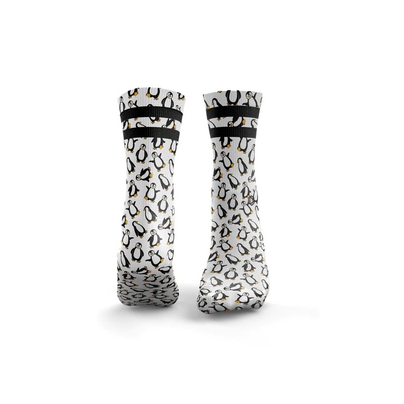 Chaussettes d'entraînement blanches modèle imprimé PENGUINS 2 STRIPES de chez HEXXEE SOCKS.