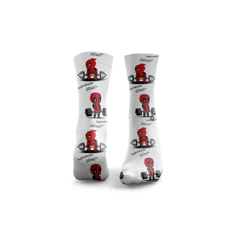 Chaussettes d'entraînement blanches modèle imprimé MAXIMUM EFFORT de chez HEXXEE SOCKS.