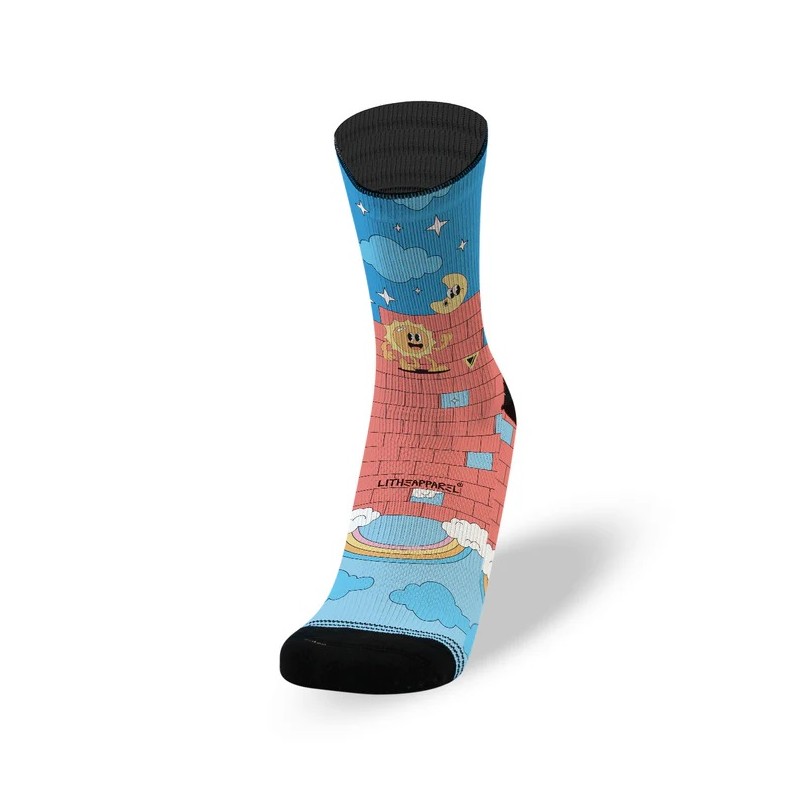 Ces chaussettes enfants multicolores BRICKS - KIDS SOCKS by LITHE APPAREL sont idéales pour les jeunes athlètes cherchant à s'entraîner avec style et confort.