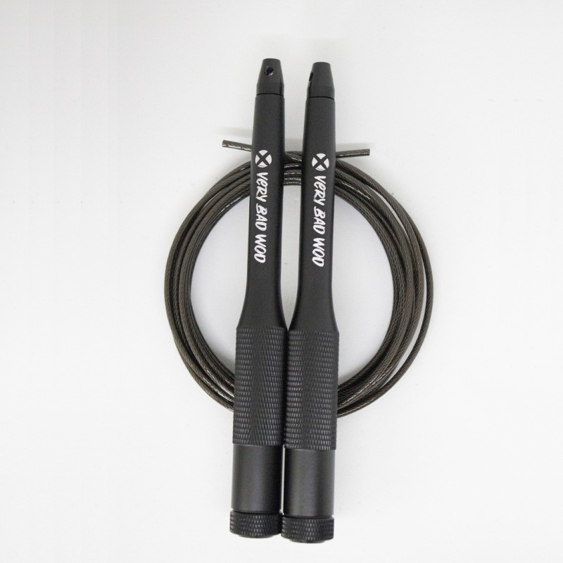 La nouvelle Corde à sauter VELOCITY 2.0 noire pour Athlète de niveau intermédiaire / avancé proposée par VERY BAD WOD est idéal pour les DU, voir les T.U.