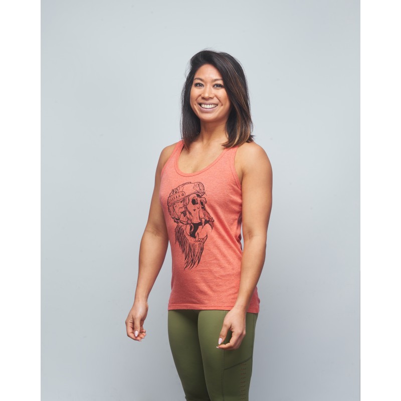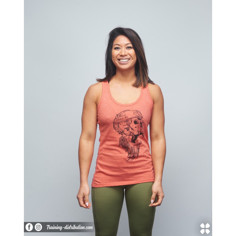 Débardeur femme rouge chiné issu de la collaboration entre VERY BAD WOD et Will Lennart Tattoo modèle GORILLA OPS.