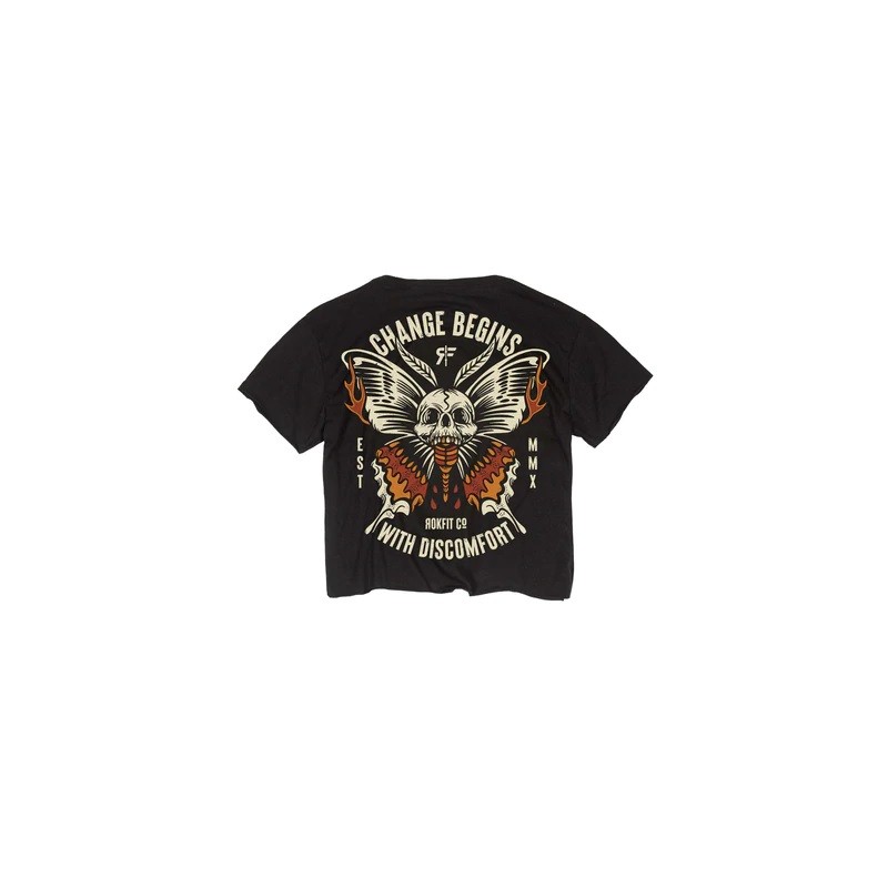 Le crop tee THE MARIPOSA noir est idéal pour les sportives cherchant le confort et le style. Design noir by RokFit.