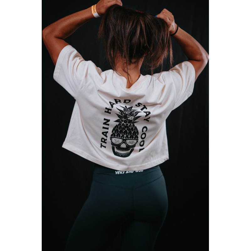 Ce Crop Top oversize blanc ivoire TRAIN HARD STAY COOL est idéal pour les pratiquant de disciplines sportives intensives telles que le Cross Training ou le CrossFit® cherchant le confort et le style. Design coloré by VERY BAD WOD.