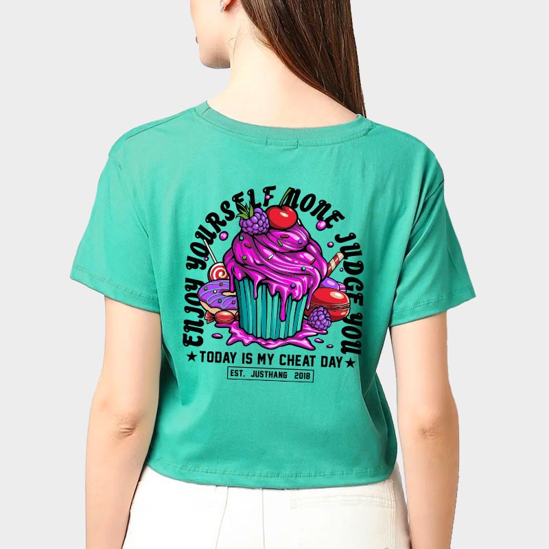 Le crop t-shirt Vert Menthe CUPCAKE est idéal pour les sportives cherchant le confort et le style. Design Vert Menthe by Justhang.