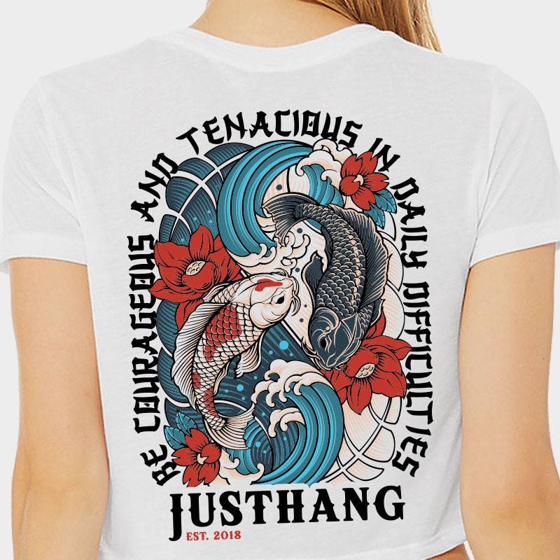 Le crop top sport blanc Koi Carp de Justhang fait bien plus qu'habiller tes sessions de CrossFit®, HYROX, musculation ou running. Il raconte une histoire. Celle du Japon, des carpes Koi, symboles de force, de persévérance et de dépassement de soi. Avec sa coupe droite et son imprimé original, ce haut sportif devient une véritable signature visuelle sur le terrain comme à la salle.