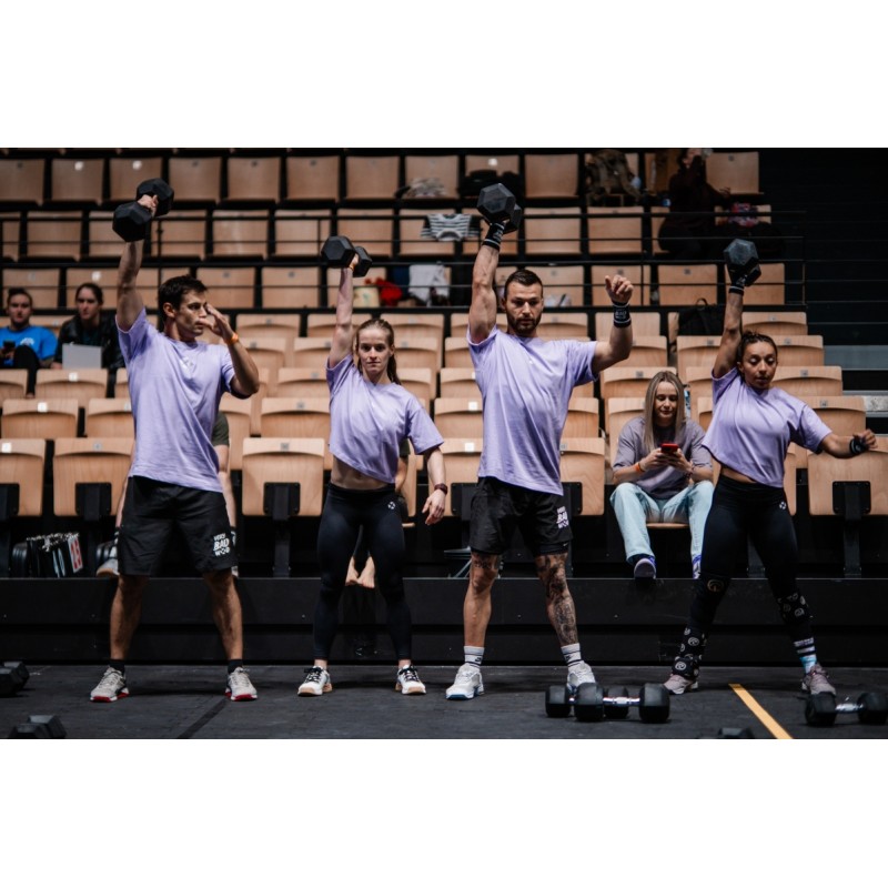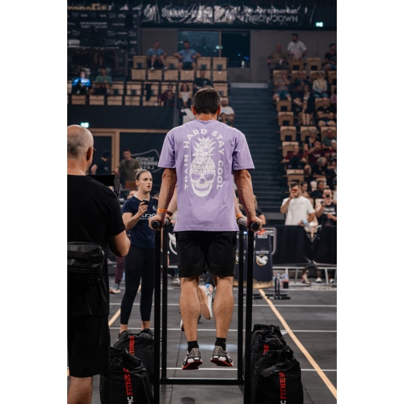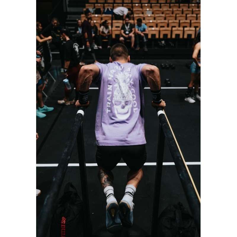 Ce T-Shirt unisexe violet TRAIN HARD STAY COOL est idéal pour les pratiquant de disciplines sportives intensives telles que le Cross Training ou le CrossFit® cherchant le confort et le style. Design coloré by VERY BAD WOD.