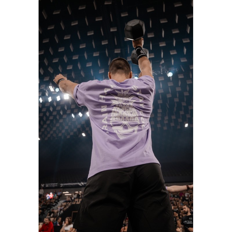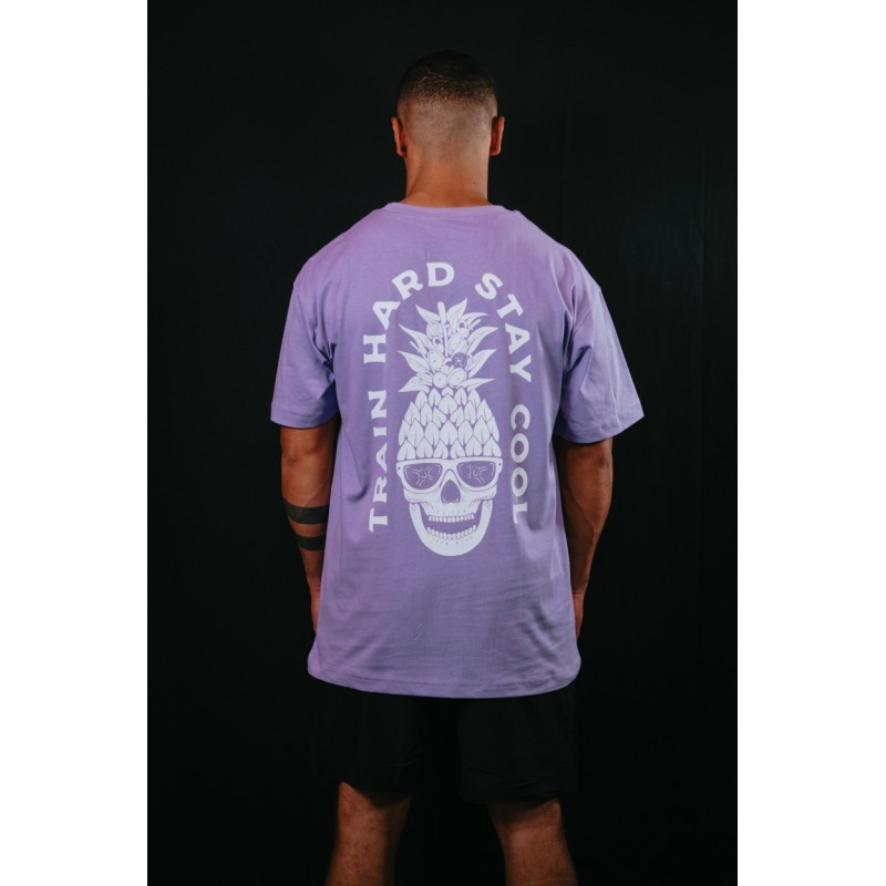 T-shirt coupe oversize unisexe de couleur violet modèle TRAIN HARD STAY COOL.