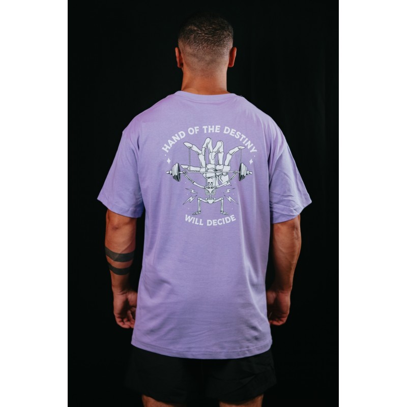 T-shirt coupe oversize unisexe de couleur violet modèle HAND OF DESTINY.
