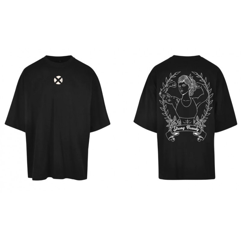 T-shirt coupe oversize unisexe de couleur noir modèle STRONG BEAUTY.