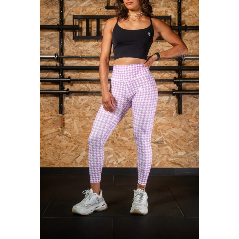 Ce Legging rose et blanc effet damier DAISY est le choix des athlètes cherchant le confort et la sobriété.