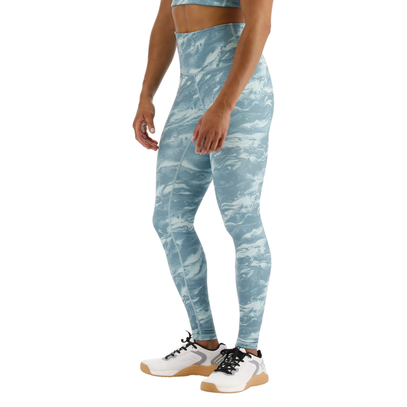 Legging femme entraînement taille haute KINETIC™ vert AQUEOUS avec le TYR sur la ceinture à l'arrière.