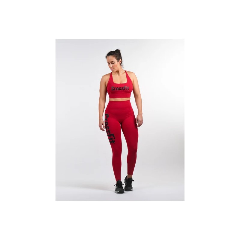 Legging femme taille haute CROSSFIT® GALAXY Rouge Carmine de la marque NORTHERN SPIRIT possède le logo CROSSFIT® sur la cuisse droite.