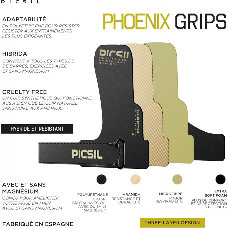 Les maniques CrossFit® sans magnésie PICSIL Phoenix version noire ne sont pas là pour faire joli - même si elles le font très bien. Conçues pour t'accompagner dans chaque WOD, chaque montée sur barre, chaque transition sur anneaux, elles incarnent ce que la marque sait faire de mieux : des maniques picsil pour entraînement intensif au service des athlètes exigeants.