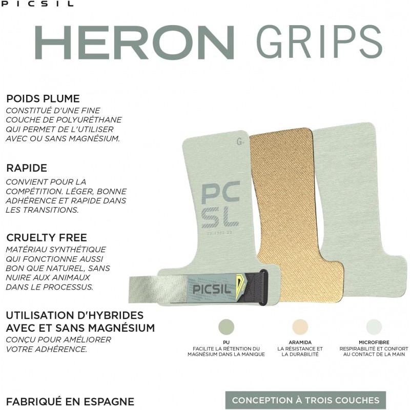 Nous vous proposons les maniques HYBRID avec ou sans magnésie HERON Argent GRIPS sans trous de chez PICSIL. De qualité supérieure, ces maniques dans magnésie ont été conçues et testées en collaboration avec les meilleurs athlètes mondiaux. Elles répondent aux athlètes exigeants qui sont à la recherche de qualité et de durabilité.