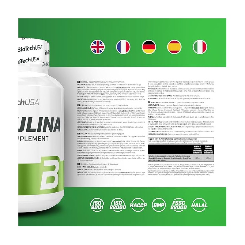Complément alimentaire SPIRULINA 100 comprimés | BioTechUSA