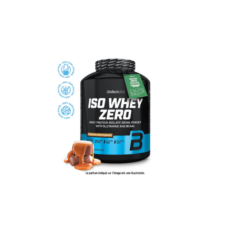 La protéine Iso Whey Zero aromatisée au caramel salé de chez BioTechUSA est une poudre de lactosérum de qualité premium élaborée à base de "Native Whey Isolate", une protéine qui provient du lait traité à basse température pour préserver ces qualités nutritionnelles.