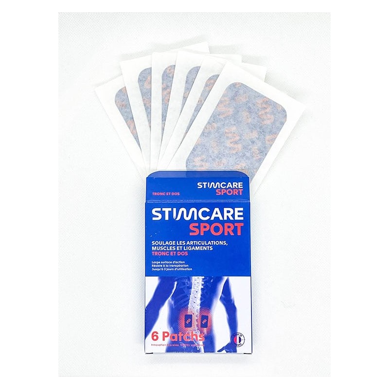 Boite de 6 patchs réparateurs proposés par STIMCARE SPORT pour les TRONC ET DOS.