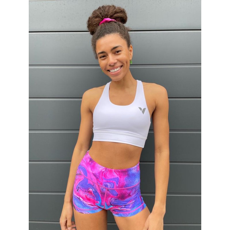 Booty short femme sport modèle multicolore MARBLE MADNESS. Le logo Voxy est présent sur l'arrière au niveau de l'élastique.