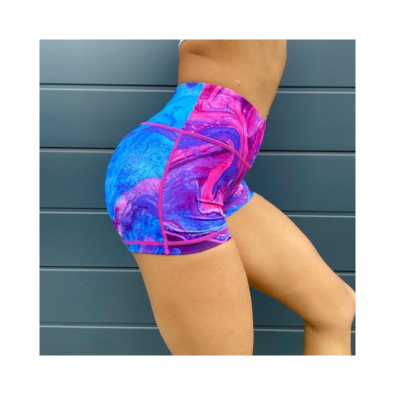 Ce booty short multicolore MARBLE MADNESS est idéal pour les Athlètes cherchant le confort et le style. Design coloré.