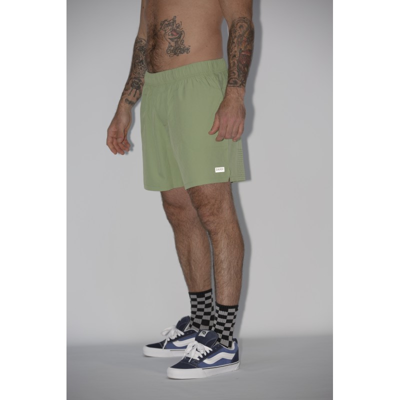 Short sport homme COMPETITION 3.0 - vert WASABI avec le logo Savage Barbell en blanc sur la cuisse droite.