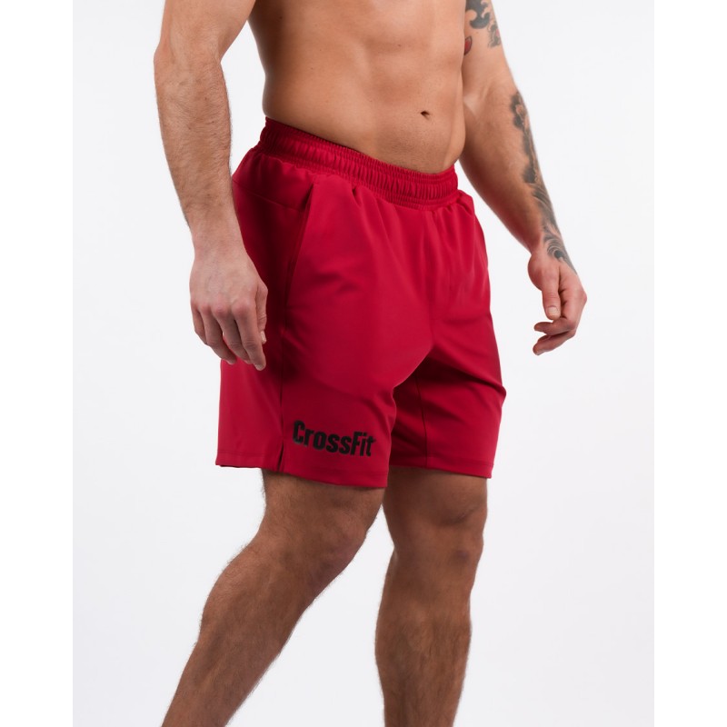 Short CROSSFIT® HUNTER rouge carmine regular 8" mi cuisse sport homme. Ce short possède le logo CrossFIt sur la cuisse droite.