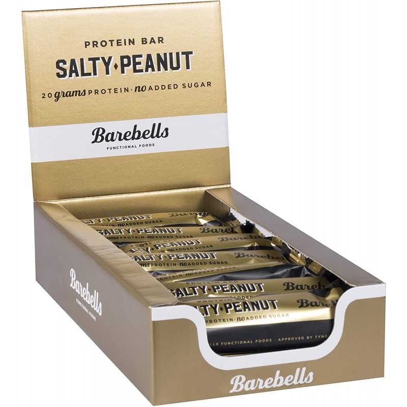 Le pack de 12 Barres protéinées naturelles et savoureuses BAREBELLS (12x55 gr), saveur CACAHUÈTES SALÉES.