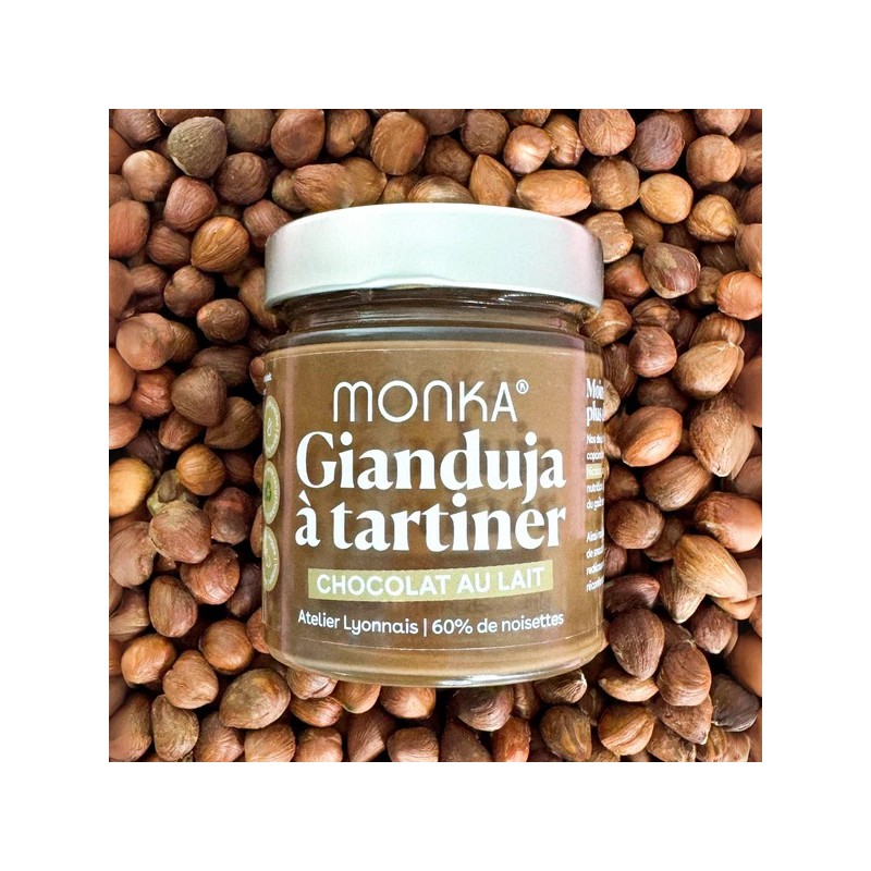 Pâte à tartiner de 200 Gr de GIANDUJA - CHOCOLAT AU LAIT proposé par la marque MONKA.
