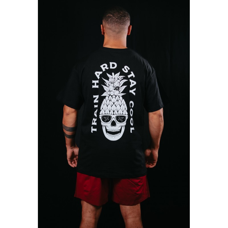 T-shirt coupe oversize unisexe de couleur noir modèle TRAIN HARD STAY COOL.