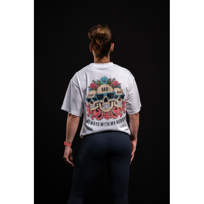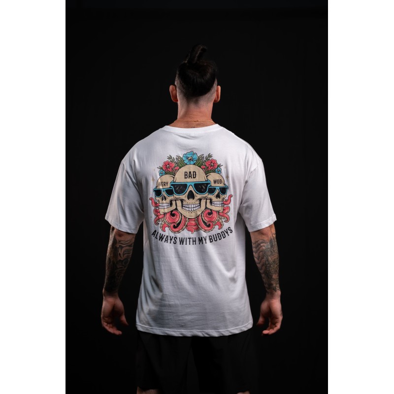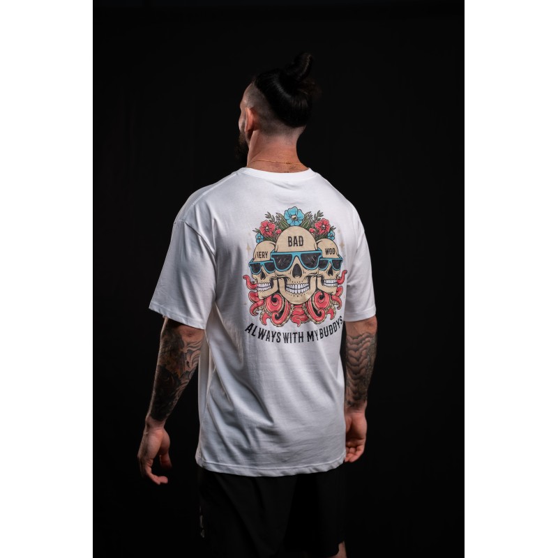 Ce T-Shirt unisexe blanc ALWAYS WITH MY BUDDYS est idéal pour les pratiquant de disciplines sportives intensives telles que le Cross Training ou le CrossFit® cherchant le confort et le style. Design coloré by VERY BAD WOD.