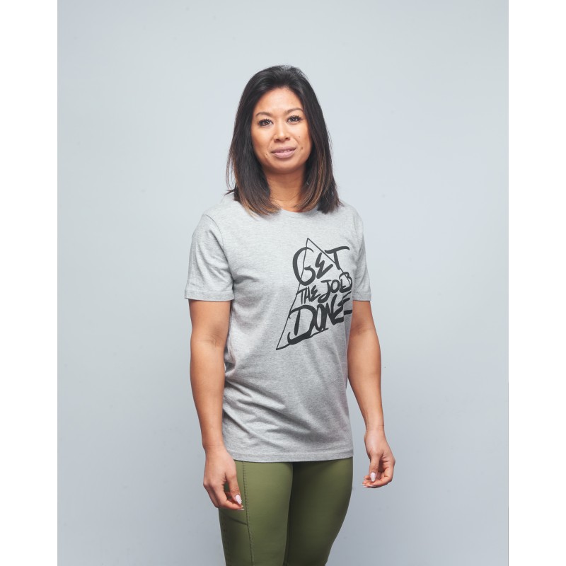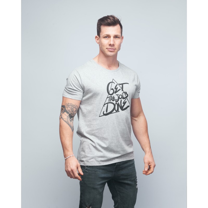 T-shirt unisexe gris GET THE JOB DONE est fabriqué en coton peigné-filé bio à 100%.