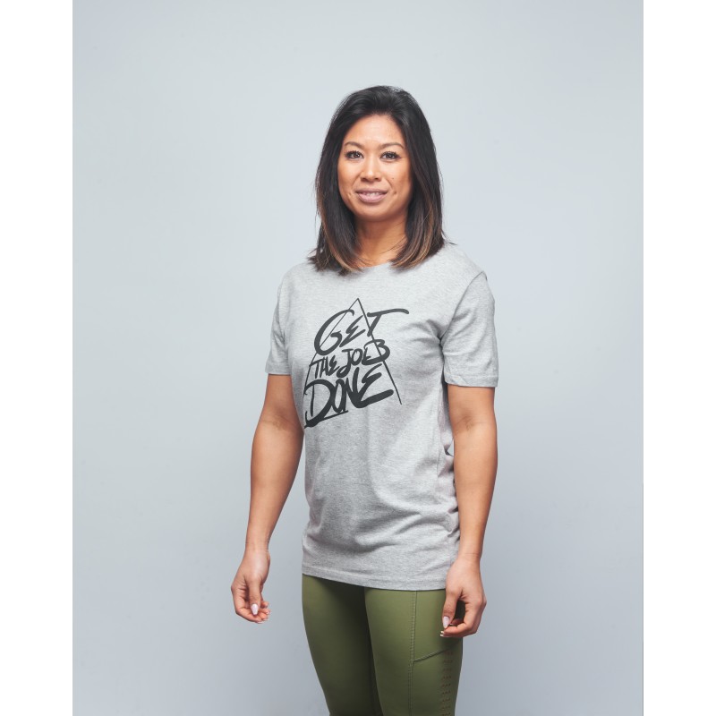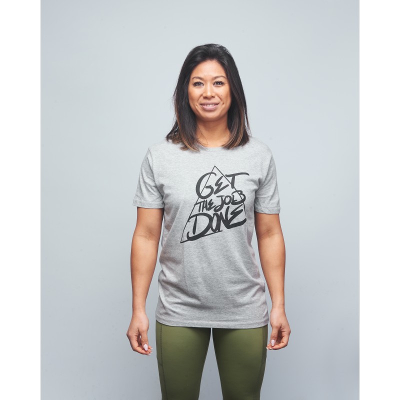 T-shirt unisexe gris issu de la collaboration entre VERY BAD WOD et Will Lennart Tattoo modèle GET THE JOB DONE.