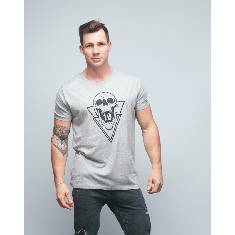 T-shirt unisexe gris issu de la collaboration entre VERY BAD WOD et Will Lennart Tattoo modèle SKULL.