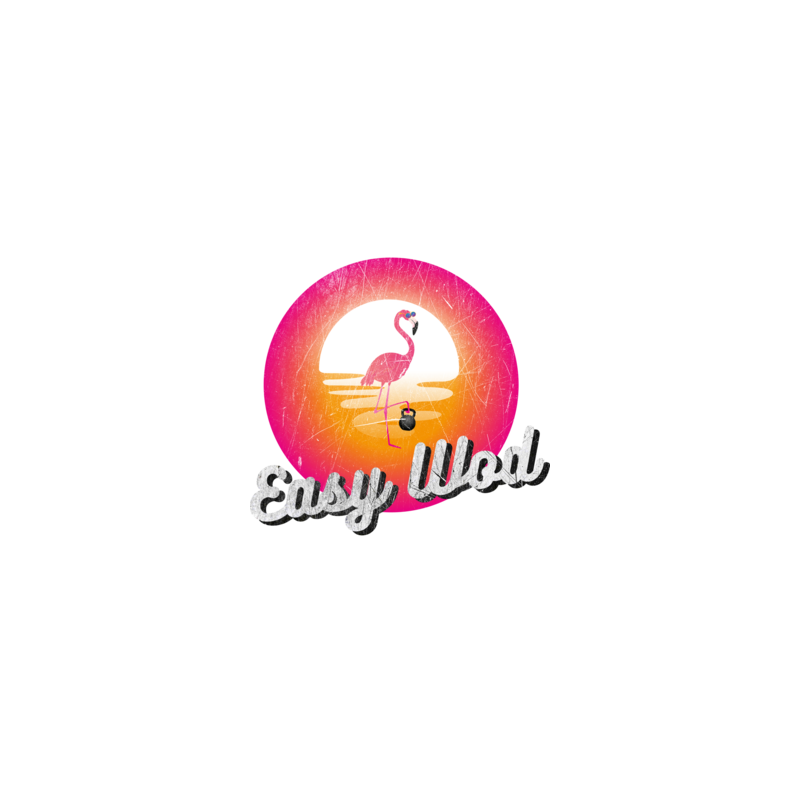 Sur l'avant vous verrez notre superbe Flamant rose en mode 100 % cool, un kettlebell dans la patte et des lunettes fashion sur le bec, le tout sur un fond rose orangé version "couché de soleil vintage". L'inscription easy Wod est présente sur l'avant en blanc/