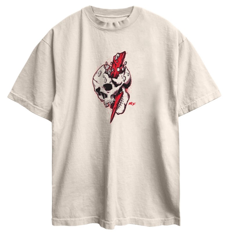 T-shirt coupe oversize unisexe de couleur beige modèle THE ENIGMA.