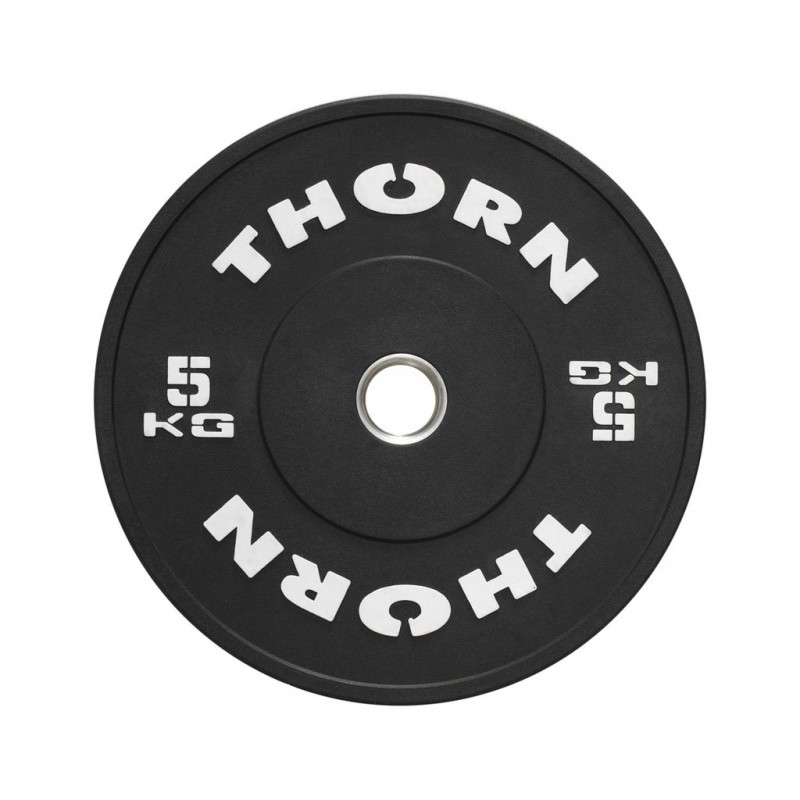 The THORN + fit 5 KG discs are designed to withstand time with good ergonomics that offers less rebound for home use. You will recognize the 5 KG bumber plates by their blue color.