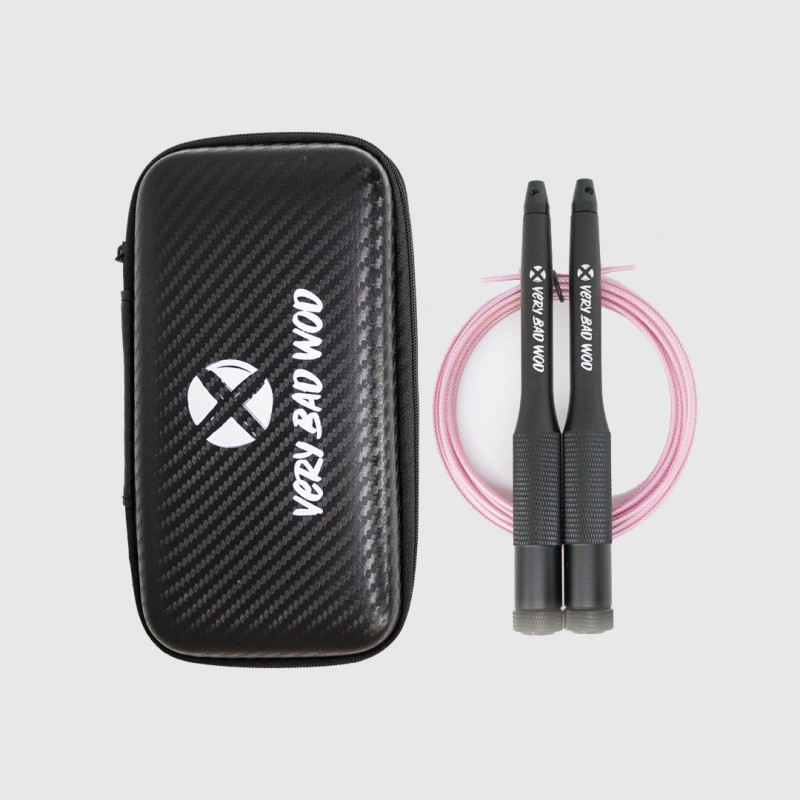 The Cross Training jump rope handles Velocity 2.0 by Very Bad Wod offer an ergonomic, lightweight, and ultra-smooth grip. Made from black aluminum with fast-spinning bearings, they're perfect for all levels. Ideal jump rope accessories for CrossFit® WODs or home workouts.