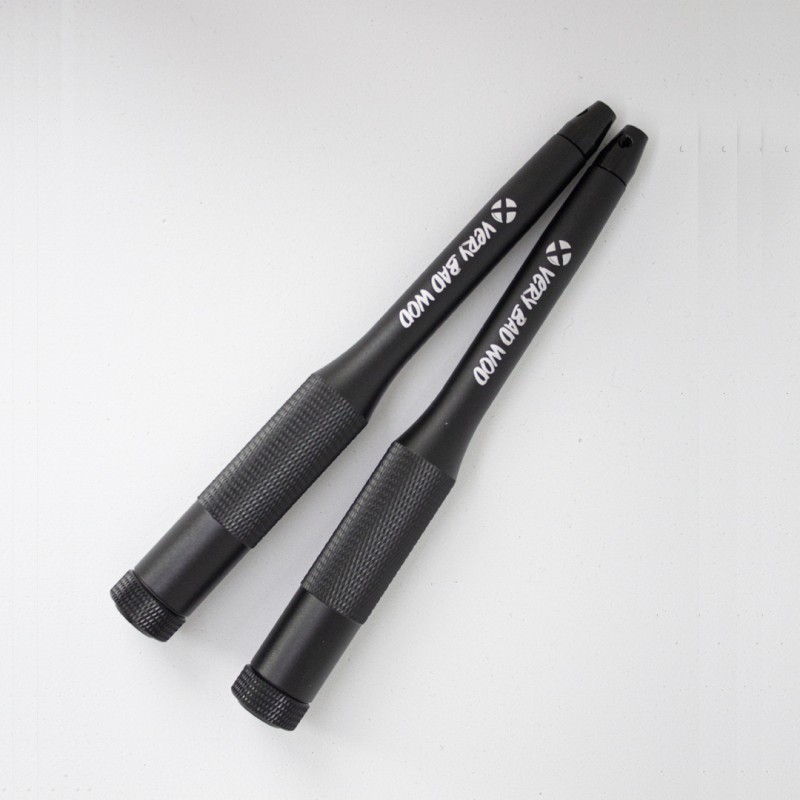 The Cross Training jump rope handles Velocity 2.0 by Very Bad Wod offer an ergonomic, lightweight, and ultra-smooth grip. Made from black aluminum with fast-spinning bearings, they're perfect for all levels. Ideal jump rope accessories for CrossFit® WODs or home workouts.