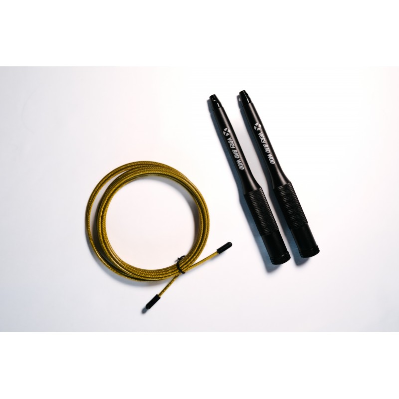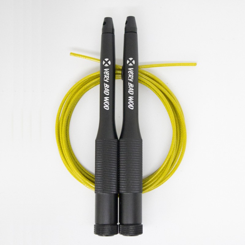 Jump rope replacement cable in yellow by Very Bad Wod, 2.5 mm thick, 3 meters long, fits all Cross Training jump ropes with compatible size. Speed rope cable, adjustable and durable, perfect for high-intensity workouts and explosive WODs.
