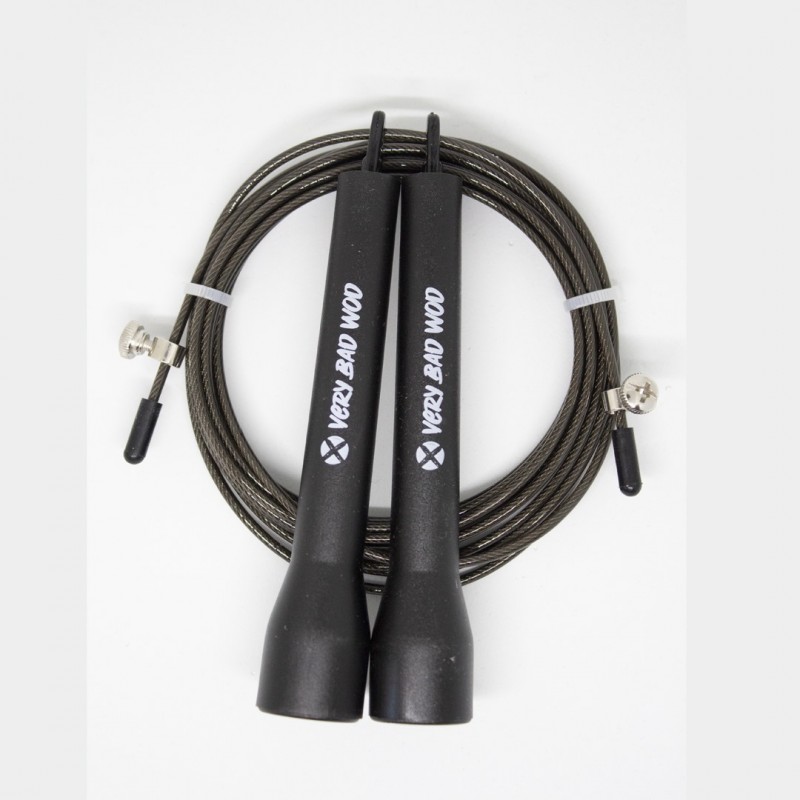 Black jump rope replacement cable by Very Bad Wod, 2.5 mm thick, 3 meters long, compatible with all Cross Training jump ropes using this format. Lightweight, adjustable, and ultra-durable-built for speed, control, and intense workouts.