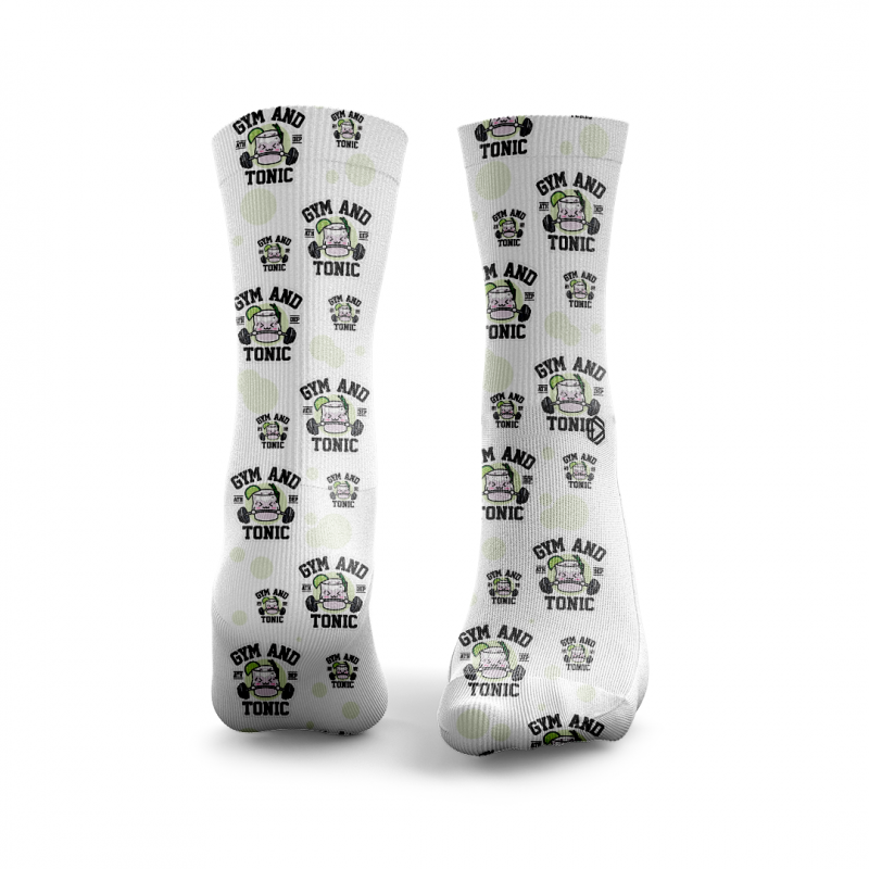 With an original design, HEXXEE Gym and Tonic Socks feature a playful print of a glass of Gin Tonic doing a deadlift with a slice of lemon on top, and the message "GYM AND TONIC" on the sock. This unique design brings fun and motivation to your workouts, inspiring you to give your best while staying stylish.
